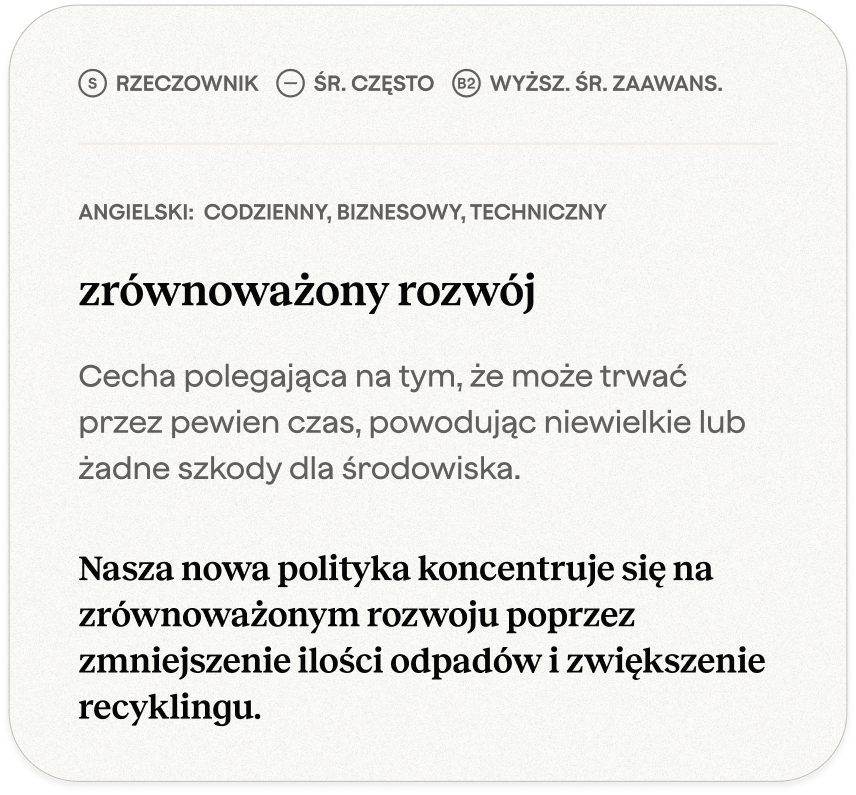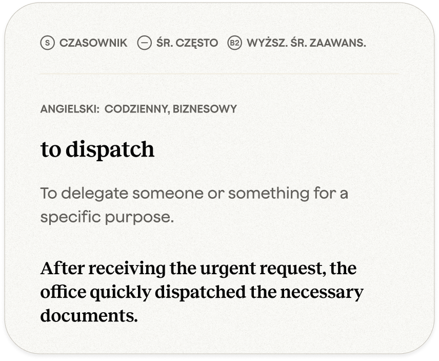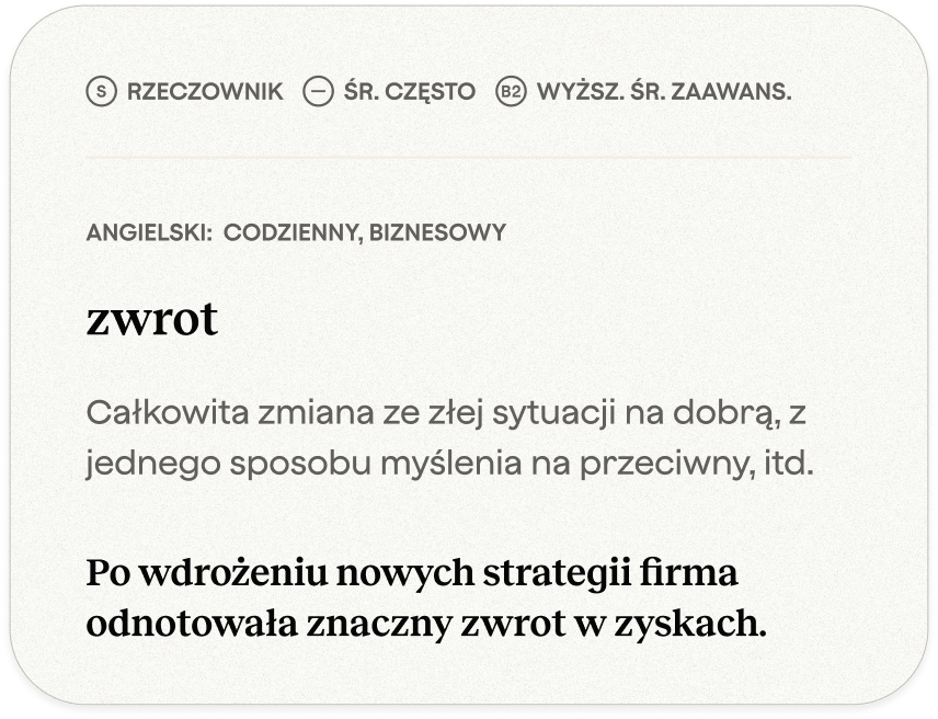 Każdego dnia publikujemy tutaj trzy starannie wybrane i praktyczne słowa oraz zwroty z biznesowego języka angielskiego, które zdecydowanie warto znać. Wybierz te, których jeszcze nie znasz, a chcesz opanować, i rozpocznij ich naukę w aplikacji, stopniowo zwiększając swój zasób aktywnego słownictwa.