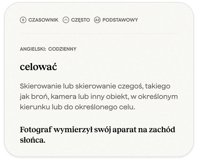 Każdego dnia publikujemy tutaj trzy starannie wybrane i praktyczne słowa oraz zwroty z codziennego języka angielskiego, które zdecydowanie warto znać. Wybierz te, których jeszcze nie znasz, a chcesz opanować, i rozpocznij ich naukę w aplikacji, stopniowo zwiększając swój zasób aktywnego słownictwa.